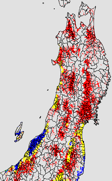 安全作期の策定にある気温指標のうち、乾田直播の安全早限日の気温指標13.5℃を用いて表示しています。13.5℃以下については1℃刻みで表示し、可能域がどのように推移するかをみるものです。