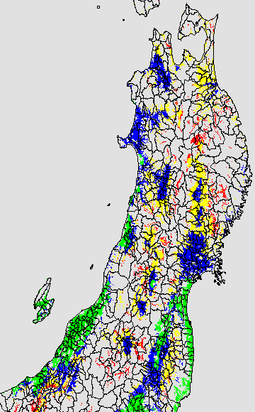 安全作期の策定にある気温指標のうち、稚苗移植の安全早限日の気温指標12.0℃を用いて表示しています。12.0℃以下については1℃刻みで表示し、可能域がどのように推移するかをみるものです。