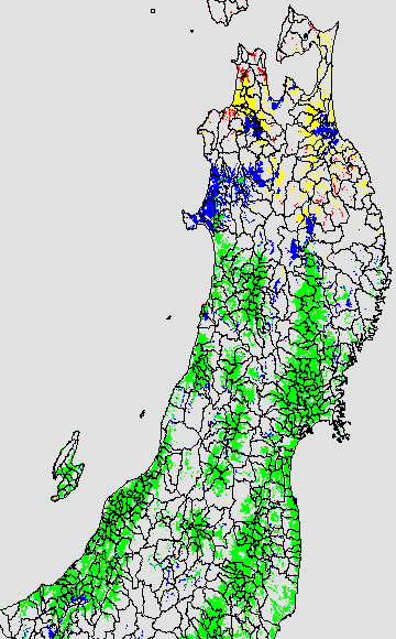 安全作期の策定にある気温指標のうち、乾田直播の安全早限日の気温指標13.5℃を用いて表示しています。13.5℃以下については1℃刻みで表示し、可能域がどのように推移するかをみるものです。