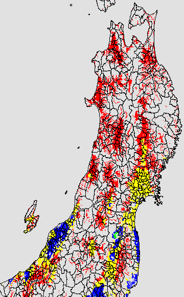 各種文献などを参考にして、分げつ形成に関する限界温度を平均気温で15℃と設定し、15℃以上については1℃刻みで表示します。過去7日の移動平均値で示す。分げつの形成が遅延すると予想される地域を監視するものです。