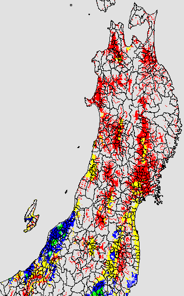 各種文献などを参考にして、分げつ形成に関する限界温度を平均気温で15℃と設定し、15℃以上については1℃刻みで表示します。過去7日の移動平均値で示す。分げつの形成が遅延すると予想される地域を監視するものです。