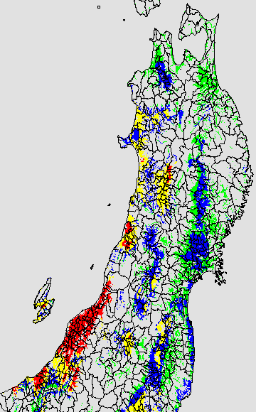 葉いもち蔓延可能域