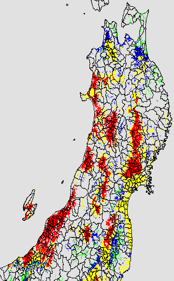 葉いもち蔓延可能域