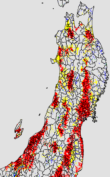 葉いもち蔓延可能域
