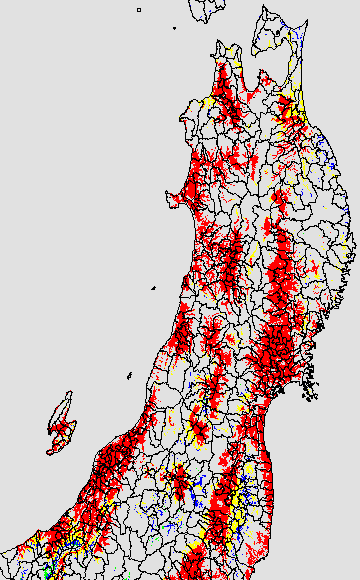安全作期の策定にある気温指標のうち、いもち病蔓延可能日の平均気温指標20.0℃を用いて表示し、20.0℃未満については1℃刻みで表示します。過去7日の移動平均値で示しています。いもち病の蔓延可能域を監視するものです。葉いもち発生予察メッシュと併せてご覧ください。