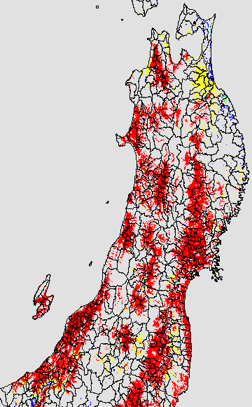 葉いもち蔓延可能域
