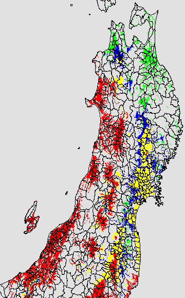葉いもち蔓延可能域