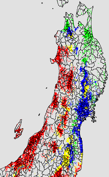 安全作期の策定にある気温指標のうち、いもち病蔓延可能日の平均気温指標20.0℃を用いて表示し、20.0℃未満については1℃刻みで表示します。過去7日の移動平均値で示しています。いもち病の蔓延可能域を監視するものです。葉いもち発生予察メッシュと併せてご覧ください。