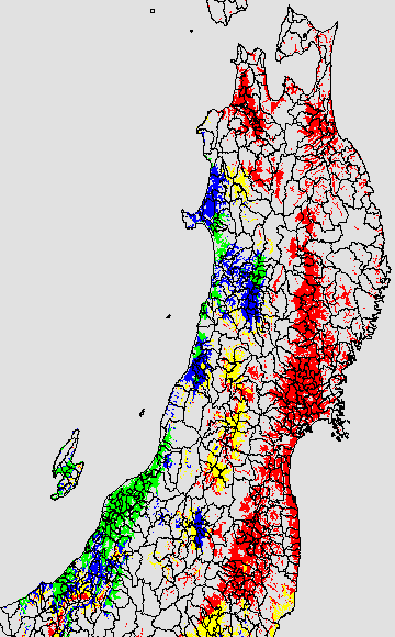 この時期平均気温が20℃以下になると、低温障害が発生しやすくなる。そこで、20℃を限界気温として、深水管理の必要な地域を特定する。また、平均気温が20〜21℃の地域も特に前歴深水管理を行う方が望ましい。この気温指標は前7日間の移動平均値で示す。