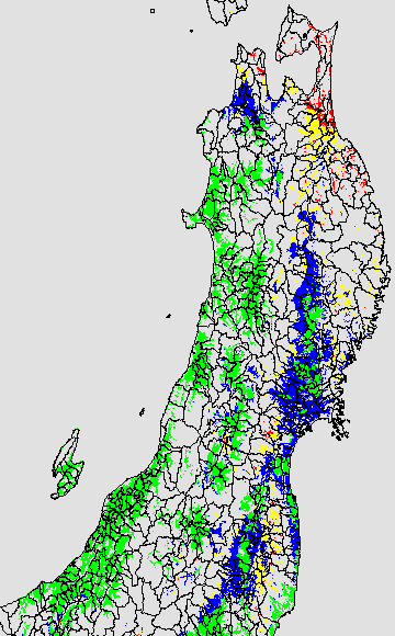 冷却量は((日平均気温−20℃)の積算値)で得られる指標である。この値が負でかつ数値が大きいほど低温の程度が大きくなり、低温被害が大きくなると推定される。この気温指標は前7日間の移動平均値を基に変換して示す。