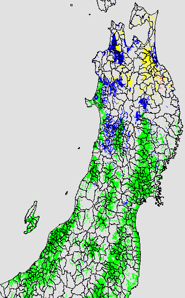 登熟停止が懸念される最低気温として、八柳(1960)は10℃を設定している。それを基に、極端な低温が来た地域の移り変わりを、最低気温の前3日の移動平均値で図示する。