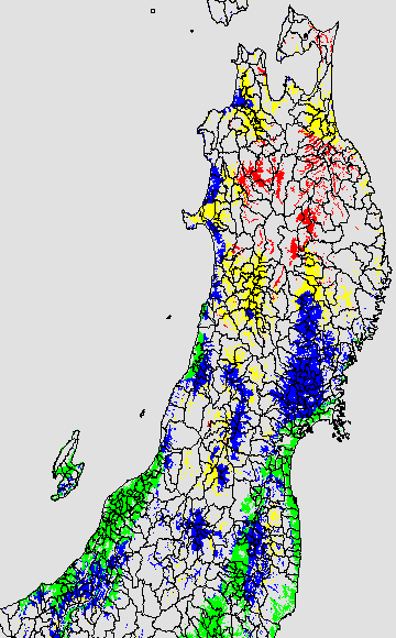 登熟停止が懸念される最低気温として、八柳(1960)は10℃を設定している。それを基に、極端な低温が来た地域の移り変わりを、最低気温の前3日の移動平均値で図示する。