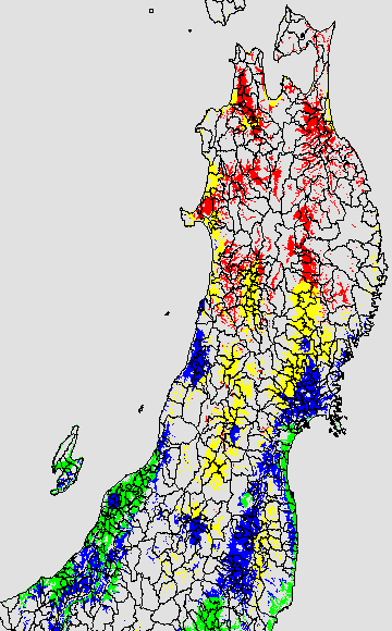 登熟停止が懸念される最低気温として、八柳(1960)は10℃を設定している。それを基に、極端な低温が来た地域の移り変わりを、最低気温の前3日の移動平均値で図示する。