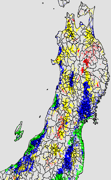 登熟停止が懸念される最低気温として、八柳(1960)は10℃を設定している。それを基に、極端な低温が来た地域の移り変わりを、最低気温の前3日の移動平均値で図示する。