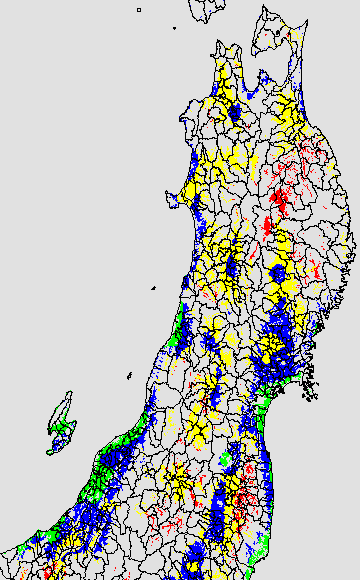 登熟停止が懸念される最低気温として、八柳(1960)は10℃を設定している。それを基に、極端な低温が来た地域の移り変わりを、最低気温の前3日の移動平均値で図示する。