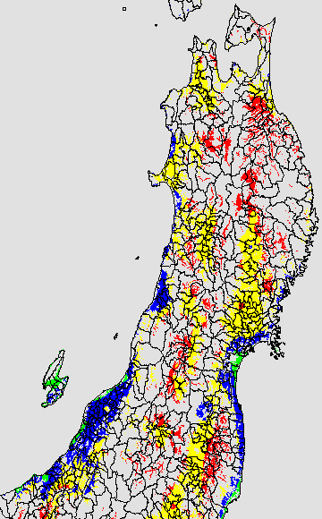 登熟停止が懸念される最低気温として、八柳(1960)は10℃を設定している。それを基に、極端な低温が来た地域の移り変わりを、最低気温の前3日の移動平均値で図示する。