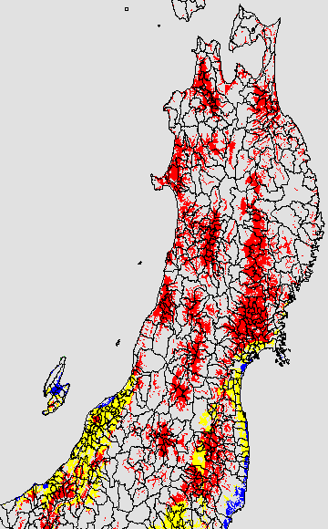 登熟停止が懸念される最低気温として、八柳(1960)は10℃を設定している。それを基に、極端な低温が来た地域の移り変わりを、最低気温の前3日の移動平均値で図示する。