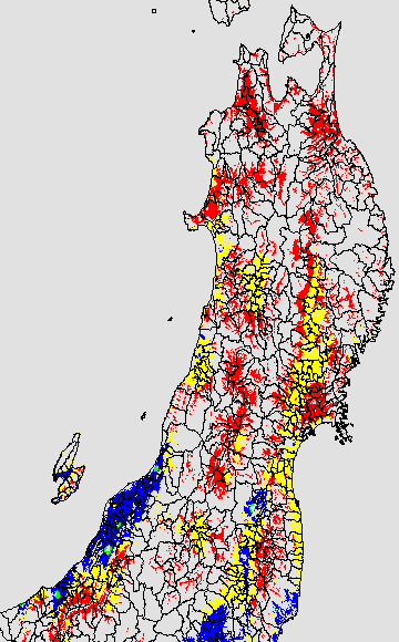 安全作期の策定にある気温指標のうち、稚苗移植の安全早限日の気温指標12.0℃を用いて表示しています。12.0℃以下については1℃刻みで表示し、可能域がどのように推移するかをみるものです。