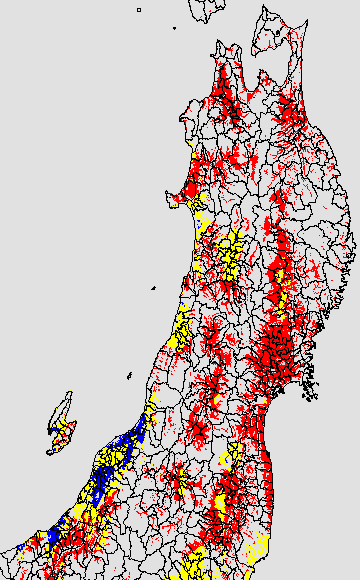 安全作期の策定にある気温指標のうち、中苗・成苗移植の安全早限日の気温指標13.0℃を用いて表示しています。13.0℃以下については1℃刻みで表示し、可能域がどのように推移するかをみるものです。