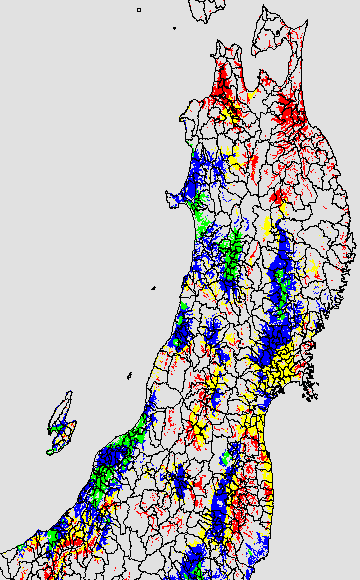 安全作期の策定にある気温指標のうち、中苗・成苗移植の安全早限日の気温指標13.0℃を用いて表示しています。13.0℃以下については1℃刻みで表示し、可能域がどのように推移するかをみるものです。