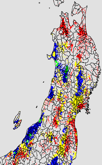 安全作期の策定にある気温指標のうち、乾田直播の安全早限日の気温指標13.5℃を用いて表示しています。13.5℃以下については1℃刻みで表示し、可能域がどのように推移するかをみるものです。