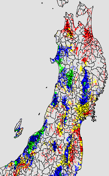 安全作期の策定にある気温指標のうち、乾田直播の安全早限日の気温指標13.5℃を用いて表示しています。13.5℃以下については1℃刻みで表示し、可能域がどのように推移するかをみるものです。