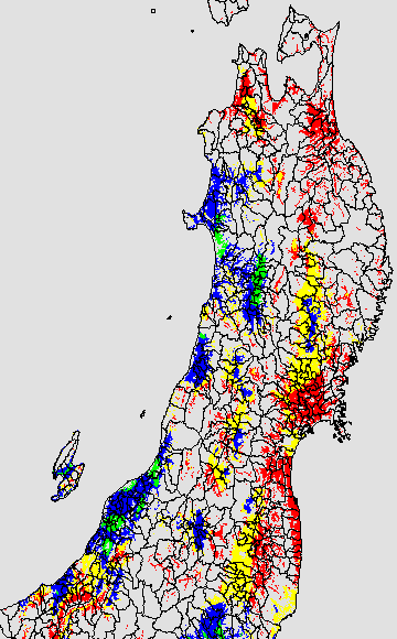 安全作期の策定にある気温指標のうち、乾田直播の安全早限日の気温指標13.5℃を用いて表示しています。13.5℃以下については1℃刻みで表示し、可能域がどのように推移するかをみるものです。