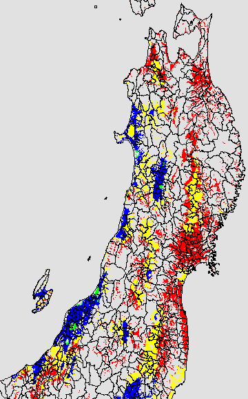 安全作期の策定にある気温指標のうち、乾田直播の安全早限日の気温指標13.5℃を用いて表示しています。13.5℃以下については1℃刻みで表示し、可能域がどのように推移するかをみるものです。