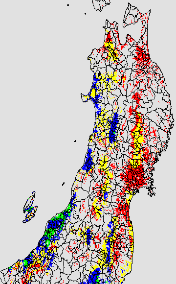安全作期の策定にある気温指標のうち、中苗・成苗移植の安全早限日の気温指標13.0℃を用いて表示しています。13.0℃以下については1℃刻みで表示し、可能域がどのように推移するかをみるものです。
