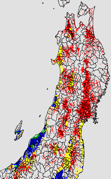 安全作期の策定にある気温指標のうち、中苗・成苗移植の安全早限日の気温指標13.0℃を用いて表示しています。13.0℃以下については1℃刻みで表示し、可能域がどのように推移するかをみるものです。