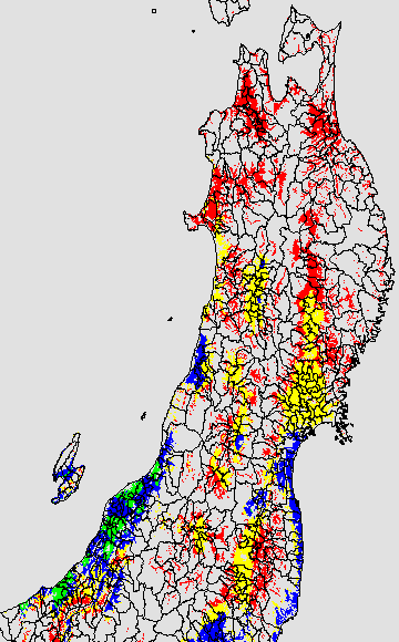 安全作期の策定にある気温指標のうち、乾田直播の安全早限日の気温指標13.5℃を用いて表示しています。13.5℃以下については1℃刻みで表示し、可能域がどのように推移するかをみるものです。