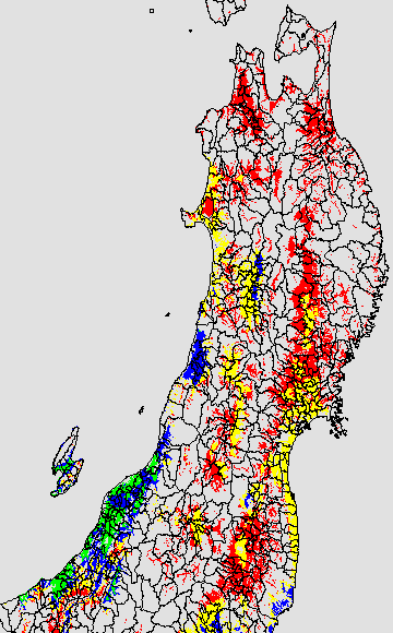 安全作期の策定にある気温指標のうち、中苗・成苗移植の安全早限日の気温指標13.0℃を用いて表示しています。13.0℃以下については1℃刻みで表示し、可能域がどのように推移するかをみるものです。