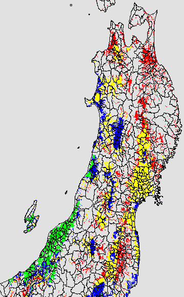安全作期の策定にある気温指標のうち、中苗・成苗移植の安全早限日の気温指標13.0℃を用いて表示しています。13.0℃以下については1℃刻みで表示し、可能域がどのように推移するかをみるものです。