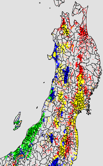 各種文献などを参考にして、草丈・根の伸長に関する限界温度を平均気温で13℃と設定し、13℃以上については1℃刻みで表示します。過去7日の移動平均値で示す。草丈や根の伸長が遅延すると予想される地域を監視するものです。