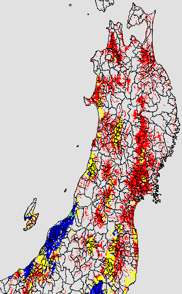 各種文献などを参考にして、分げつ形成に関する限界温度を平均気温で15℃と設定し、15℃以上については1℃刻みで表示します。過去7日の移動平均値で示す。分げつの形成が遅延すると予想される地域を監視するものです。