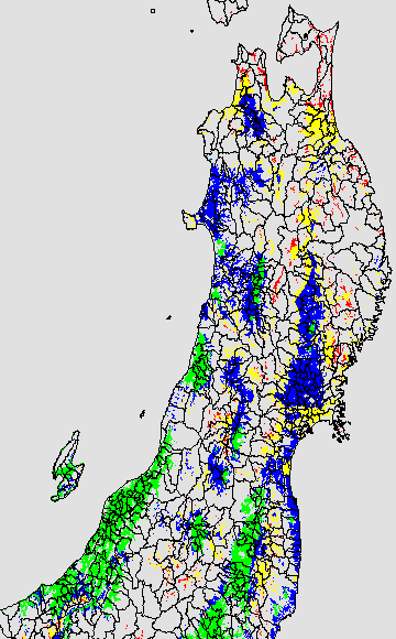 各種文献などを参考にして、分げつ形成に関する限界温度を平均気温で15℃と設定し、15℃以上については1℃刻みで表示します。過去7日の移動平均値で示す。分げつの形成が遅延すると予想される地域を監視するものです。