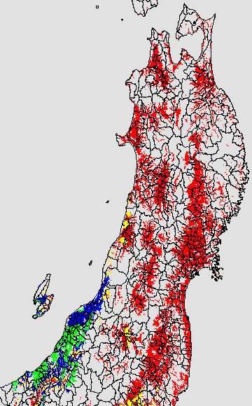 各種文献などを参考にして、分げつ形成に関する限界温度を平均気温で15℃と設定し、15℃以上については1℃刻みで表示します。過去7日の移動平均値で示す。分げつの形成が遅延すると予想される地域を監視するものです。
