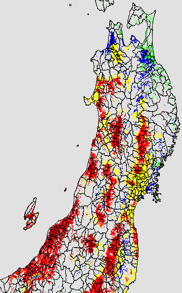 安全作期の策定にある気温指標のうち、いもち病蔓延可能日の平均気温指標20.0℃を用いて表示し、20.0℃未満については1℃刻みで表示します。過去7日の移動平均値で示しています。いもち病の蔓延可能域を監視するものです。葉いもち発生予察メッシュと併せてご覧ください。