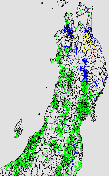 登熟停止が懸念される最低気温として、八柳(1960)は10℃を設定している。それを基に、極端な低温が来た地域の移り変わりを、最低気温の前3日の移動平均値で図示する。