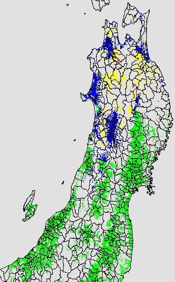登熟停止が懸念される最低気温として、八柳(1960)は10℃を設定している。それを基に、極端な低温が来た地域の移り変わりを、最低気温の前3日の移動平均値で図示する。