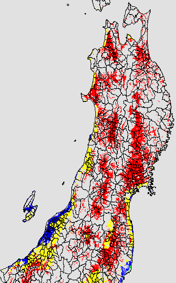 登熟停止が懸念される最低気温として、八柳(1960)は10℃を設定している。それを基に、極端な低温が来た地域の移り変わりを、最低気温の前3日の移動平均値で図示する。
