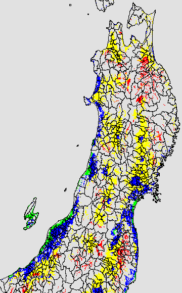 登熟停止が懸念される最低気温として、八柳(1960)は10℃を設定している。それを基に、極端な低温が来た地域の移り変わりを、最低気温の前3日の移動平均値で図示する。