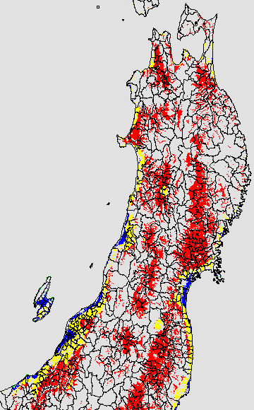 登熟停止が懸念される最低気温として、八柳(1960)は10℃を設定している。それを基に、極端な低温が来た地域の移り変わりを、最低気温の前3日の移動平均値で図示する。