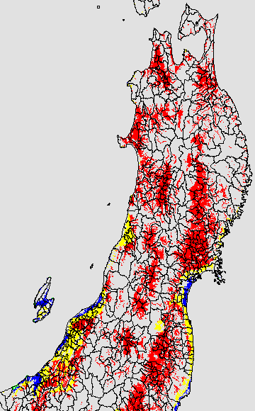 登熟停止が懸念される最低気温として、八柳(1960)は10℃を設定している。それを基に、極端な低温が来た地域の移り変わりを、最低気温の前3日の移動平均値で図示する。