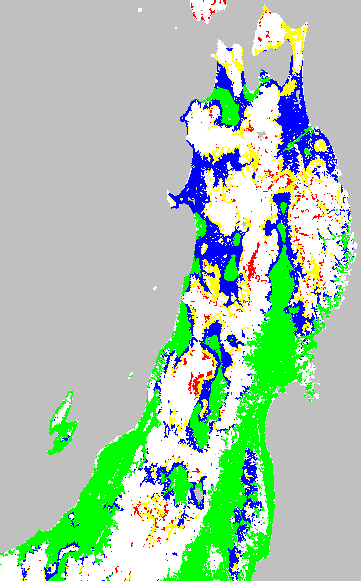 安全作期の策定にある気温指標のうち、夏作物の生育可能な気温指標10℃を用いて表示しています。10℃以下については1℃刻みで表示し、可能域がどのように推移するかをみるものです。