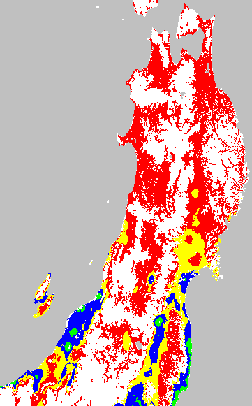 安全作期の策定にある気温指標のうち、中苗・成苗移植の安全早限日の気温指標13.0℃を用いて表示しています。13.0℃以下については1℃刻みで表示し、可能域がどのように推移するかをみるものです。