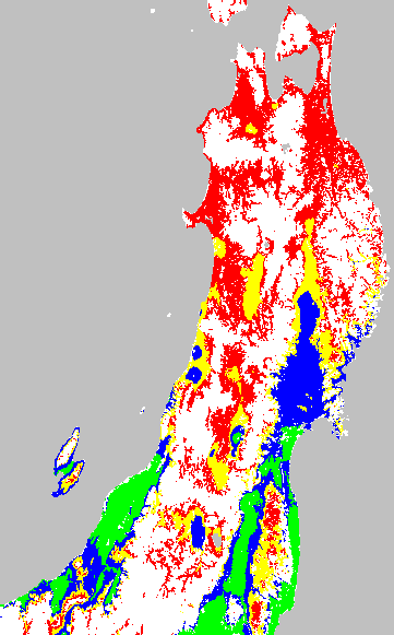 安全作期の策定にある気温指標のうち、乾田直播の安全早限日の気温指標13.5℃を用いて表示しています。13.5℃以下については1℃刻みで表示し、可能域がどのように推移するかをみるものです。