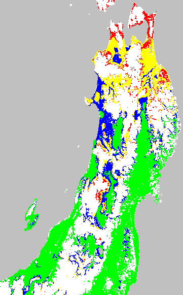 安全作期の策定にある気温指標のうち、夏作物の生育可能な気温指標10℃を用いて表示しています。10℃以下については1℃刻みで表示し、可能域がどのように推移するかをみるものです。