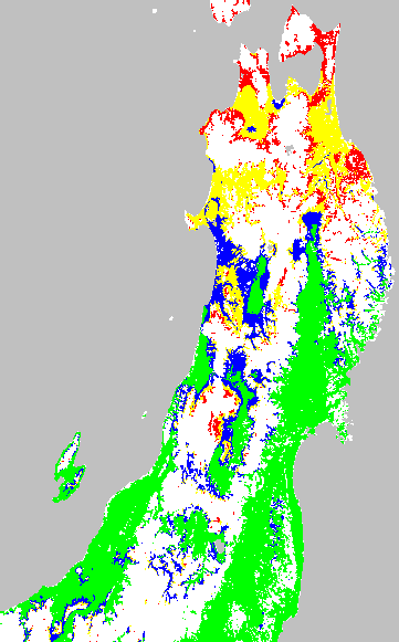 安全作期の策定にある気温指標のうち、夏作物の生育可能な気温指標10℃を用いて表示しています。10℃以下については1℃刻みで表示し、可能域がどのように推移するかをみるものです。