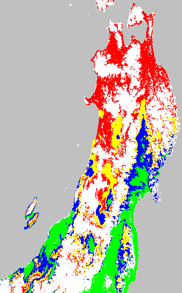 安全作期の策定にある気温指標のうち、湛水直播の安全早限日の気温指標11.5℃を用いて表示しています。11.5℃以下については1℃刻みで表示し、可能域がどのように推移するかをみるものです。